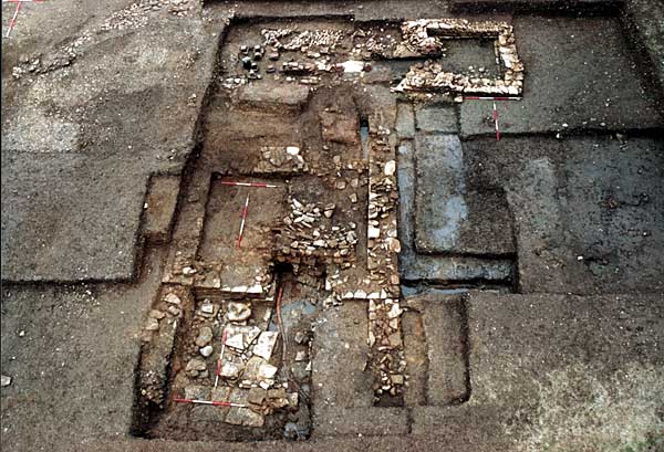 The bath house excavation at the end of the dig in 2001 - viewed from the eastern end, looking west