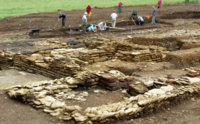 AN INFORMAL DAILY LOG (...based on the Weblog sent to the Channel 4 Time Team Big Roman Dig) Day 1 of 20: Monday 27th June About 30 people, all volunteers including some welcome new faces, turned up on a cloudless day - a bit too hot for comfort really! After introductions and a health and safety briefing (use plenty of sun cream!), most spent the day weeding the bath house and courtyard, and clearing away the straw left by the bails that had protected the site from frost since last year's dig.