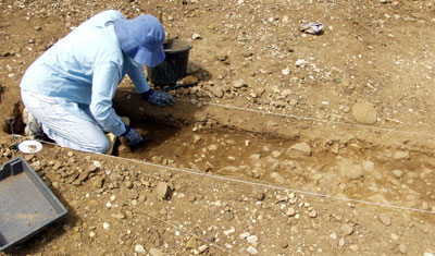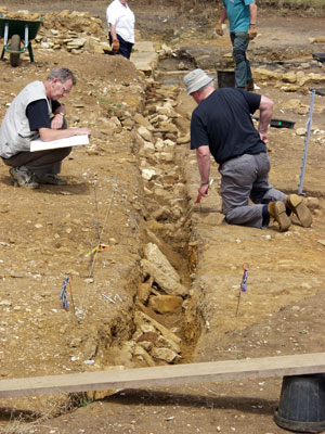 That's all for now after another very hot day, but with a cooling breeze. Jeremy Cooper Day 15 of 20: Friday 15th July (The Ides of July) Room, room, give me room!* A hot sunny day with a strong breeze. Work in the roundhouse continued, with a lot of pot coming up in an area of soft ground.