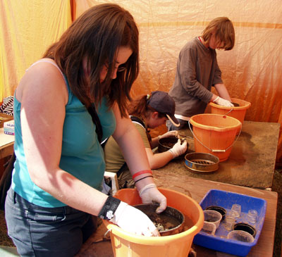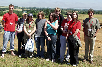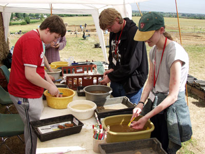 More visitors today, this time year-10 students on the Aim Higher Summer School scheme. This provides a opportunities for school students to find out what it's like to be at University, to encourage them to think of working towards becoming an undergraduate. Look here for the Aim Higher web site. This group is spending three days at University College Northampton, where our site director, Steve Young, is a Senior Lecturer. They had a tour of the site with Steve and then an opportunity to work in the finds area, washing finds and sieving.