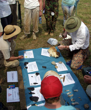At lunch time, Neil, Pete and Jo set out a superb hands-on display about flint tools and flint knapping. We hope to reproduce it here on this web site.