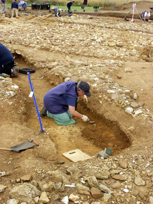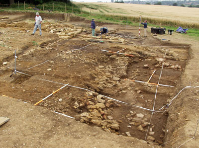It turns out that Alice (one of our most devoted readers, and ex-Whitehall supervisor) was here for just one day! She needed a good dig before getting on with the dissertation for her archaeology MA. Thanks for your help, Alice, and good luck! Hands-on visitors today, from Danetre School. They found out just how hard the soil can be at the east end of the main villa range! (Photo to be reinstated when all parents have given their permission).