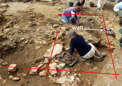 AN INFORMAL DAILY LOG (...based on the Weblog sent to the Channel 4 Time Team Big Roman Dig) WEEK 4 Day 16 of 20: Monday 18th July Heads Down The first day of the last week, and fewer pairs of hands, so the round house was given time off. Attention switched to the East end of the villa range, and the elusive search for the East Wing. Two trenches were opened up.