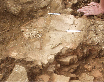 The drain from the bath house is clearly visible in the middle: the clay pipes in the bottom right corner are a victorian drain. On the lower slope, Steve himself spent much of the day trowelling alongside the mere mortals. ![]() Clean-shaven Steve is modelling his woollen hat A large piece of floor surface was uncovered, showing a distinct straight edge perpendicular to the alignment of the pilae.