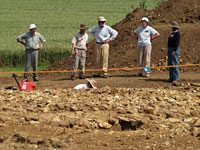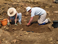AN OCCASIONAL PROGRESS REPORT Days 1 and 2 of 20: Monday 26th,Tuesday 27th, June OK, so the big news is - no weeding!! Steve (our archaeological supervisor) doesn't necessarily want to clear the whole site this year, so it's straight into proper digging. That's not to say that there won't be some weeding later: apart from any other needs, we've been offered the production of a virtual reality walk around the bathhouse ... ... so later on that will need to be cleaned up a bit for photography. There are two focal points for the excavation this year (click here for a labelled overview of the site in a new browser window): 1. The "new bath house" area at the bottom of the slope: