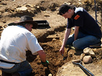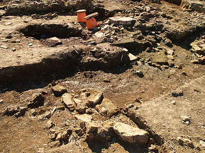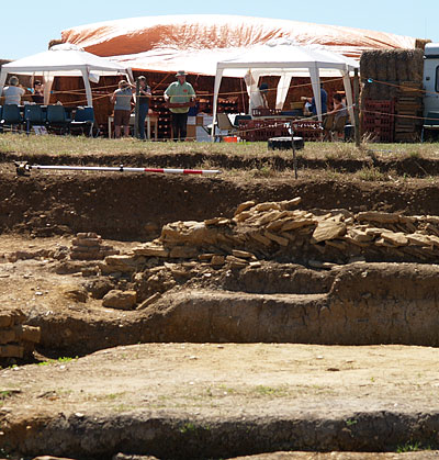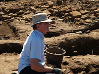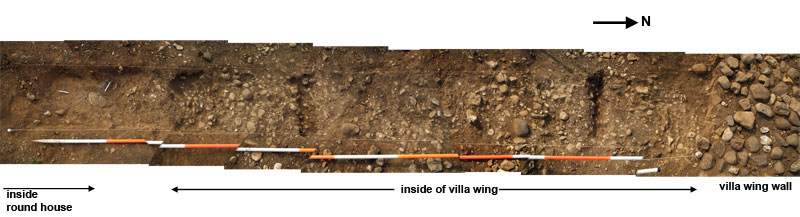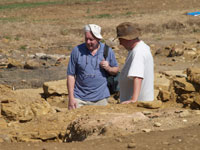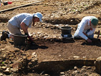 Barbara's RAF-supported break-away dig in the upper villa range is really taking off (sorry!)... ... They reckon they've found the edge of a compacted surface which probably pre-dates the villa range, and is possibly contemporary with round house 2.