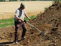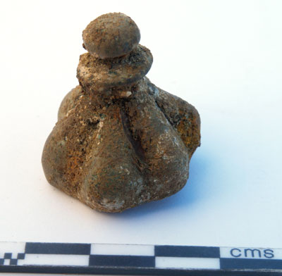 ... detected a substantial metal object in the spoil heap (oh the embarrassment of it!)... Some reckon its a sort of pommel - might have been on a small dagger or a very small sword? And finally, an email received yesterday from Malcolm Caine:
