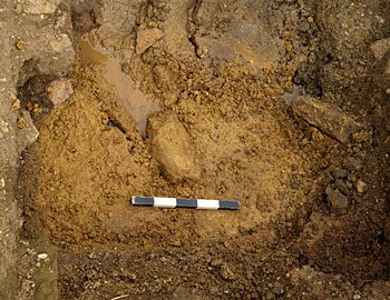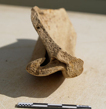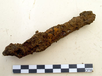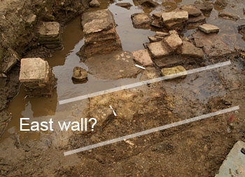 Very windy on site today! Also the added interest of the poisoned water in West Northants. Quite short today - three finds: An iron tool of some sort - a knife, chisel or... When it's been conserved we'll have a much better idea. Obviously, this worked stone has been sliced into with a sharp blade of some sort. But why? Was it to sharpen the blade? Was it to make a nice pattern? Was it to make a gaming board? Your ideas are welcome, especially if you've come across somehting like this before at a Roman site: nick@whitehallvilla.co.uk