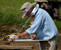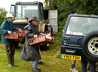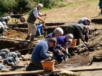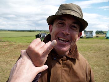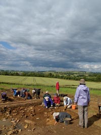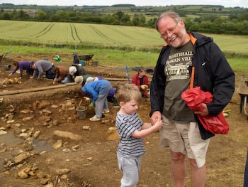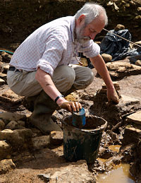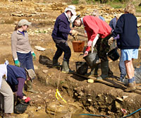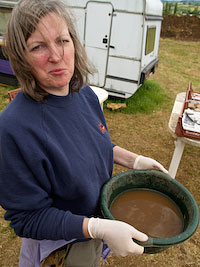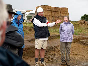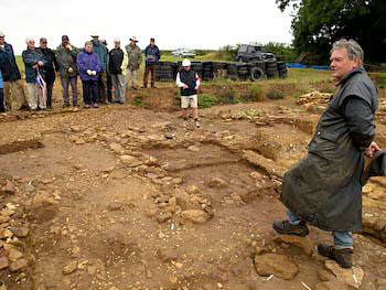 A few showers today, and a 'last-but-one-day' tension between wanting to dig more and needing to start finishing things off for photography. We were on target for photography at the end of the afternoon, but then it rained, and the fairground ride on the tractor was postponed to tomorrow morning. Visitors today: Martin Heath of BBC Radio Northampton interviewed several of us, and recorded Glenn excavating the biggest (I think) pottery fragment ever discovered at Whitehall.