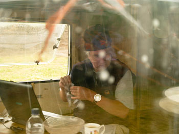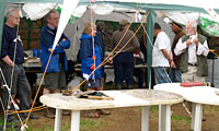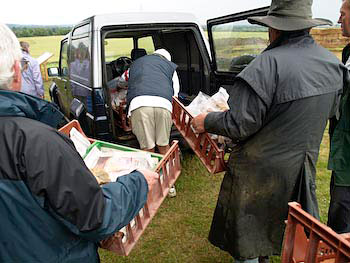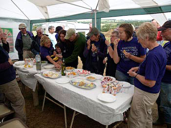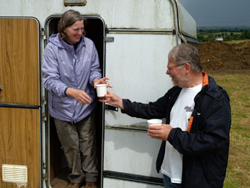 AN OCCASIONAL PROGRESS REPORT Day 16 of 20: Monday 7th July It rained. Then it stopped raining. Then it rained... etc... Not much digging today. While the office work carried on regardless, Barbara openend Ye Olde Cafe Chez Steve... ... and did roaring business. |