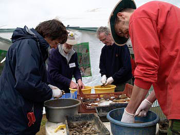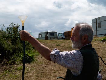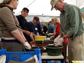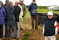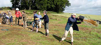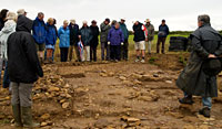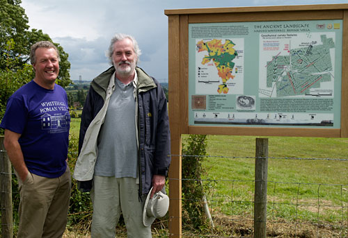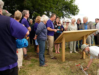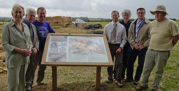 See more of the high-level shots here. As soon as we had finished it rained a bit, making us feel very smug that we had planned the day well! Final finds washing and general site clearance followed... ...until noon. The Interpretation Boards Launch The VIP guests were Councillor Joan Kirkbride (Northants County Council), Graham Smith (South Northants Council), Dave Hayward (Nether Heyford Parish Council - wearing a different hat, or not, for this occasion) and David Pritchard and Martin Heathfield from Natural England. Natural England paid for the boards as part of the Higher Level Environmental Stewardship agreement between NE and Nick Adams.