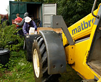 As it was in the beginning... Bucket chains, as on Day 1. This time I was there to catch them. They worked well, and on target at 09.45 all was ready for the Matbro (tractor) shots from on high.