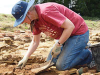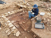 Ruth is working carefully across the surface of the room where new pilae were discovered last week...