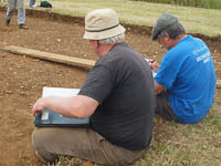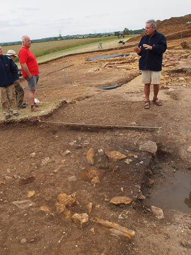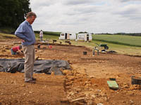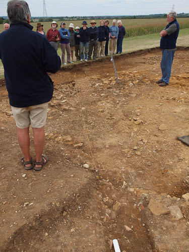 And where it peters out, Tony explains, so does the 'antiquarian trench' that runs diagonally across the site from NW to SE, marked here by strings...