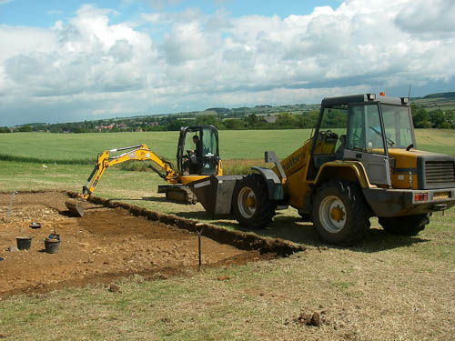 The digger is back tomorrow to make quite sure that this new suite of rooms is the final lot to the south. But don't hold your breath as tonight Fred showed me a rather fetching foundation-type stone and a few more limestones and bunter pebbles at RIGHT ANGLES to the wall exposed today and heading south, right under Steve's caravan!