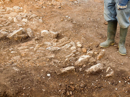 ...typical of the hefty foundations found at corners (the stones that is, not Wren, Andy and Fred). These have not been robbed out as their equivalents at other corners must have been.