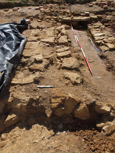The drain was dated by the pottery found in it. There has been very little Roman pottery found this year - indeed, very few finds apart from building materials. It seems the parts of the site being worked on were well cleared when they were robbed out to build BH1 just up the hill.