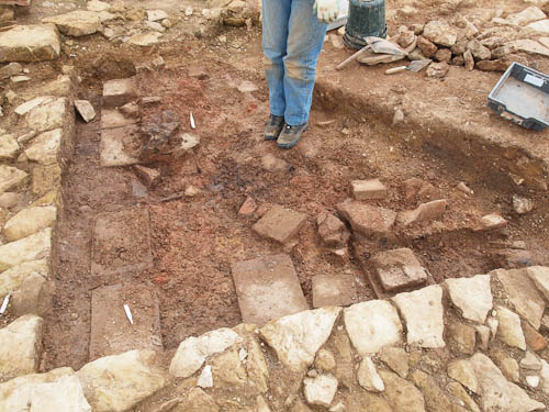 It looks as though room 7 may end up as 7a and 7b, part heated and part not. They'll be taking the levels down here and in the area to the East of room 7 (right in the photo) next week to see what lies underneath.