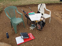 Oh good grief. As you may have noticed, this was a day of heavy showers. More like mini hurricanes really - they came close to blowing away the encampment, and filled the drains with water...