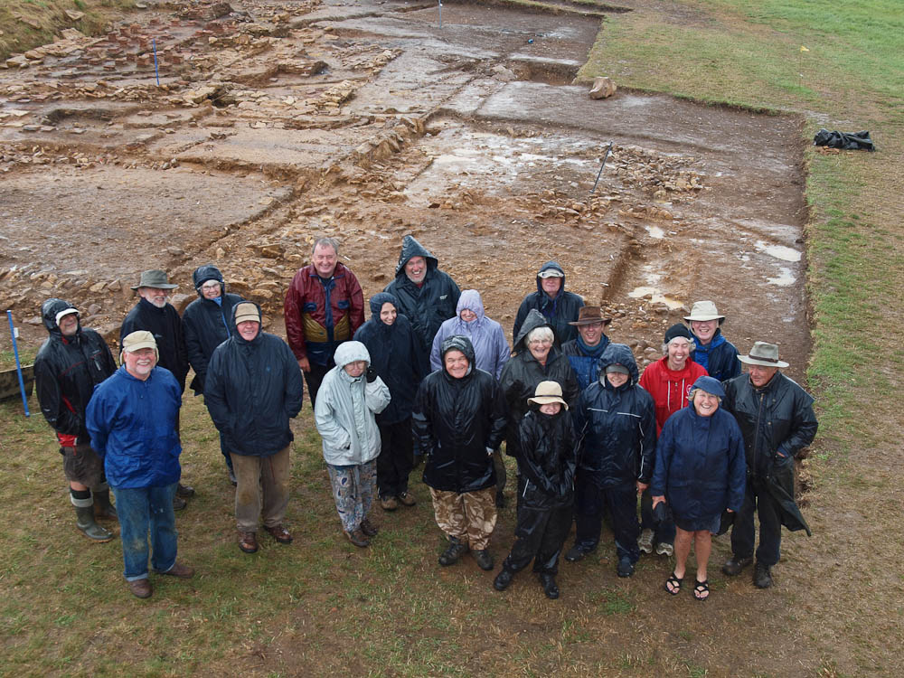 Here's the annual end of dig group photo, taken in the pouring rain! There had been other diggers on site during the day, but by 5pm the numbers were very understandably reduced.