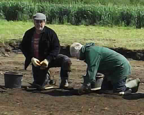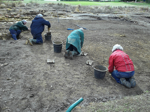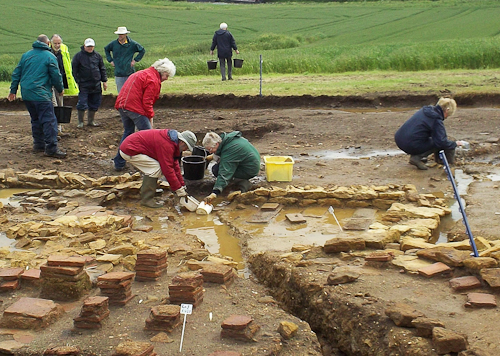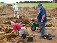 2. there was a good deal of bailing out - the EU might like to compare notes. 3. the site was "lightly trowelled" all over (sounds like a beauty palour treatment). Also Shirley and Margaret polished the hearth, sorry I mean the flagstones, between the pilae till they could see their faces in them. Right lovely it is. 4. There was talk about the T-shirt - there will be one, but the design is yet to be finalised. I suggest 5 circles and 2012 somewhere, but preferably not so it looks like a wonky swastika. |