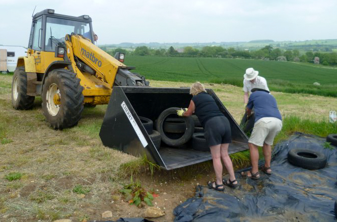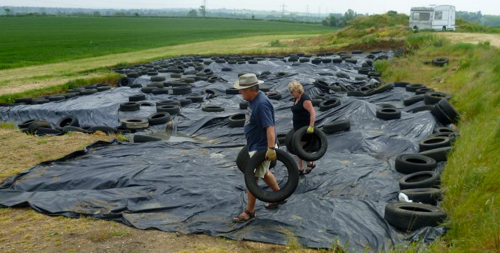 Pre-dig Hi Jeremy The first is of us painting the roof of the "office", not sure why we had to do this before the excavation but we did, on a very hot sticky day. The others are of us actually taking off the covers.