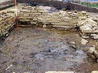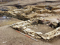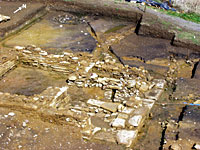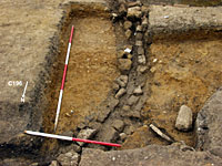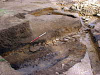 At the south-western end of the corridor a matching apse (see photo on right) to that located previously at the north eastern end was identified and a sequence of phasing was established between the construction of the corridor and the addition of the wing. Further work in this area should reveal the internal structure of a suite of rooms and the dimensions of the individual rooms.