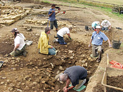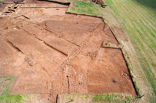 West wing and roundhouse Roll mouse over photo to see areas excavated in 2004 (red shading shows west wing area: green shading shows 'new' roundhouse)