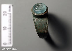 The excavation of the courtyard surface was extended to the south-east and a ditch limiting its extent was recorded. We do not know yet whether the ditch is a boundary marker or the drainage ditch for the roadway which passed obliquely across this part of the site. A very interesting 3rd century AD ring with a glass intaglio was discovered in the fill of the ditch.