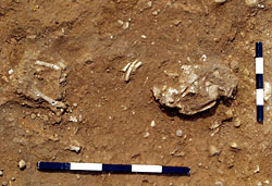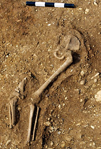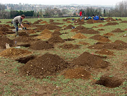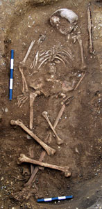 In March 2004 we undertook an exploratory test pitting of the site to try and locate the extent of the cemetery and to ascertain the potential extent of the remains.