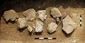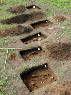Six burials were excavated in various states of preservation. One grave was well preserved and still had its stone capping in place whilst in another only the lower portion of the legs of the individual survived.