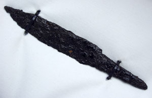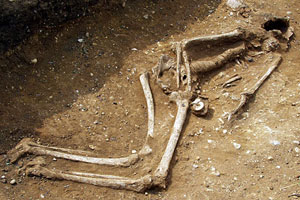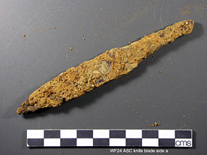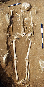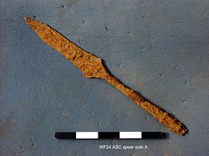 The graves had been carefully laid out in a single continuous row and probably represent a small family group covering one or two generations. Amongst the skeletons is a body of a woman, two males, an adolescent and a baby. The evidence affirms the family aspect to the burial group and the grave goods reflect the relative status of the different individuals. The woman was buried with personal items of jewellery and domestic items of a culinary nature, while one of the male skeletons had a spear. All the adults were buried with their personal knife.