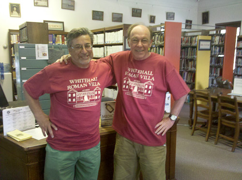 I donated a copy of each of Ruth's three books to the Public Library in Monticello NY and a Whitehall T-shirt to the Librarian who is an old friend of mine from Woodstock days. I thought you might like to see the picture and even, perhaps Jeremy, put it in the blog? Alan the Librarian is also interested in archaeology and goes to a dig in Israel.