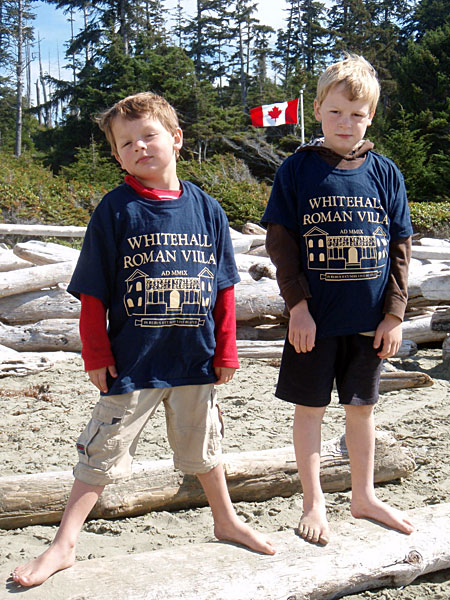 We have a challenger for the Most Distant T-Shirt. Beryl and Robin's grandsons visited Vancouver Island in Summer 2010 and were photographed wearing their Whitehall T-shirts at Torfino in the Pacific Rim Park, with the Pacific Ocean in the background (nice romantic touch that).