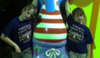 Beryl and Robin's grandsons* have recently taken their T-shirts to Florida - the same ones as they took to Vancouver (see Challenge 1 below), but since laundered. They now challenge for the Most Travelled T-shirt(s) record.