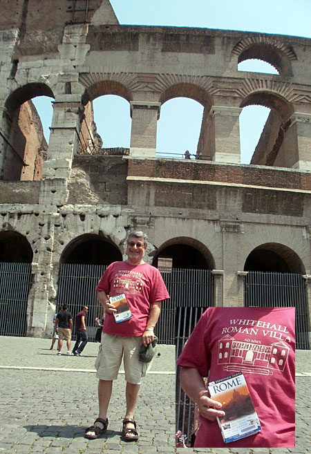 Tony obviously wants to consolidate his position as he has suggested a Most Travelled but UK-based T-shirt (MTBUKBTS) competition and poposed himself as the current record holder after wearing his USA travelled T-shirt in Rome. The Rome caper adds 1,782 miles to the 6,876 miles of Heathrow to Moneticello and return, giving a total of 8,658 miles.