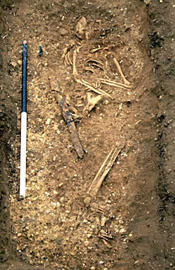 Northamptonshire Archaeology carried out an emergency excavation of two burials in September 2000 on land at Whitehall Farm Nether Heyford. The burials were discovered when an associated sword was found by two metal detector users.