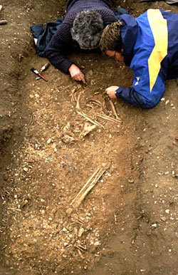 The find was examined by Steve Young, who confirmed the presence of human remains and contacted Northamptonshire Heritage for advice. Northamptonshire Archaeology was then commissioned to carry out an emergency excavation of the burials and associated remains. The burials were excavated under Home Office Licence Number 26613, issued on the 7 September 2000.
